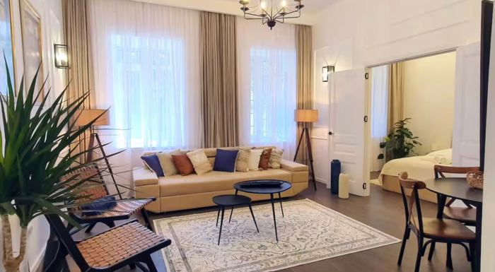 Premier real estate for sale in Sololaki, on Giga Lortkipanidze Street (former Lermontov), in a historical district and in a house! The apartment has 2 rooms, a separate kitchen and a large bathroom. An apartment in which every detail reflects individuality, taste and inner peace.Style and history — in every meter, comfort and aesthetics in the historical center of the city. Ideal space for a couple living in the rhythm of travel, art and self-knowledge. The apartment is for sale with furniture and all appliances!