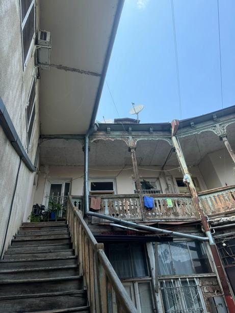 For sale: an apartment in old Tbilisi, Kote Apkhazi 30 (old Leselidze street) in a tourist area: Europe Park, Sioni Cathedral, synagogue, 5 minutes from Freedom metro. In an Italian yard 2/2, the building has an old renovation, investment project, suitable for a hotel, restaurant, and other commercial activities. The apartment is 100 square meters, with 2 bedrooms, a bathroom, a large living space, and a loggia. For more information: Nana.