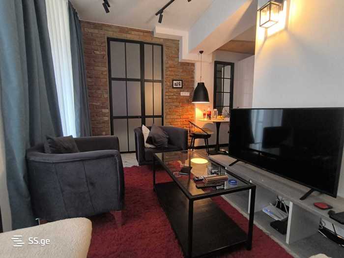 For sale, a duplex-type non-standard project apartment in Bukia's yard with old renovation, bright and cozy, most of the furniture and appliances remain in the apartment...