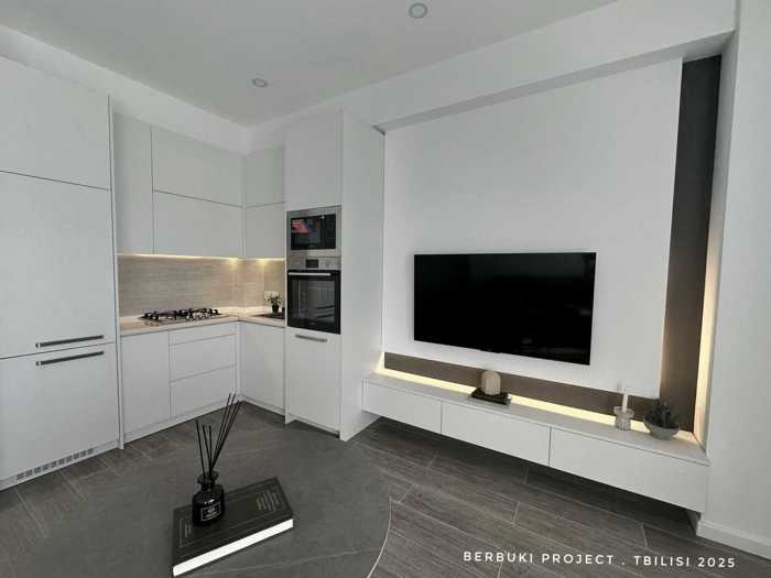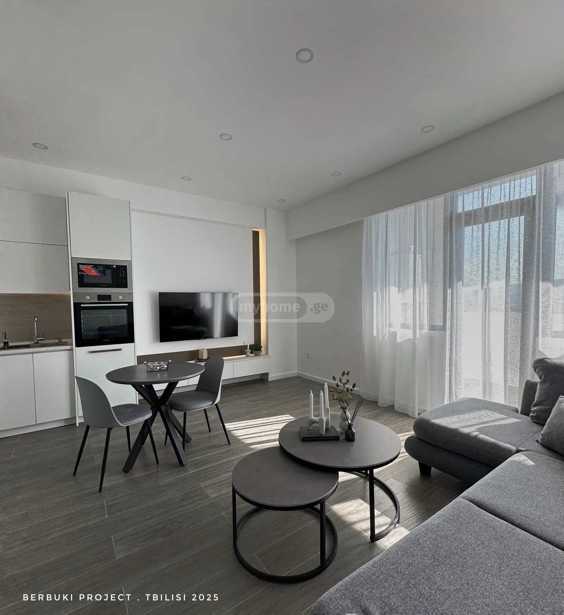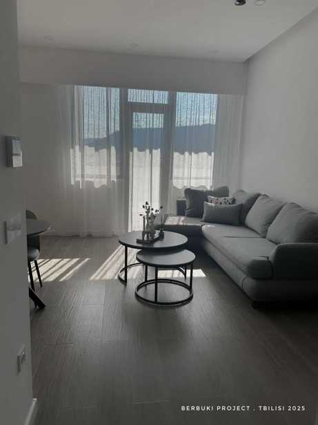 For sale in Saburtalo, in a great location, 2 minutes on foot from the Sports Palace and Technical University metro, on Berbuki Street, in a newly built building, a 3-room renovated apartment with 2 isolated bedrooms, one bedroom has secondary lighting, a studio-type living room, central heating, furnished and equipped with appliances. I will send you the video in private.