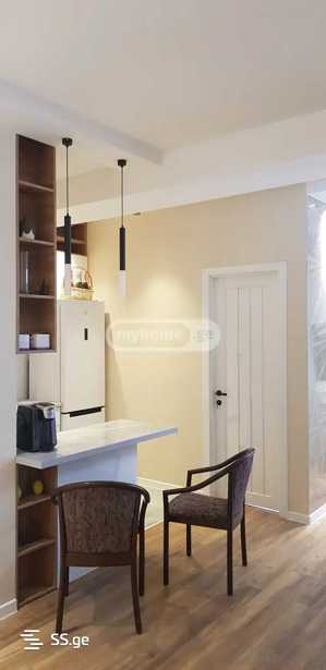 For sale is a 2-room renovated apartment in a newly built building on Meliton Kantaria Street, with a separate bedroom, a studio-type living room, 1 bathroom, and a balcony.