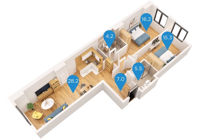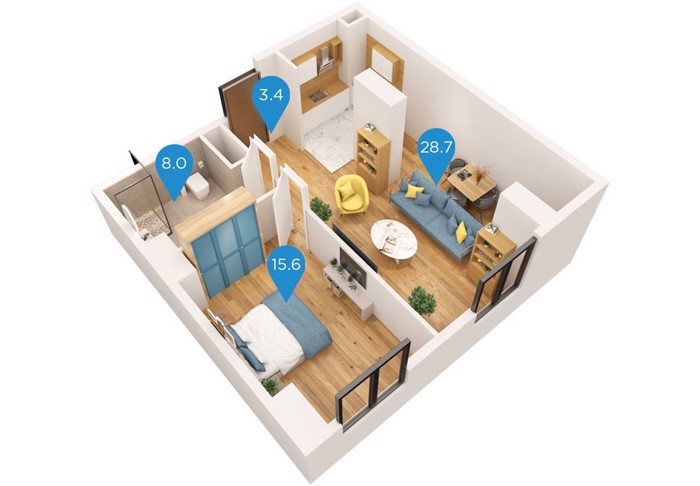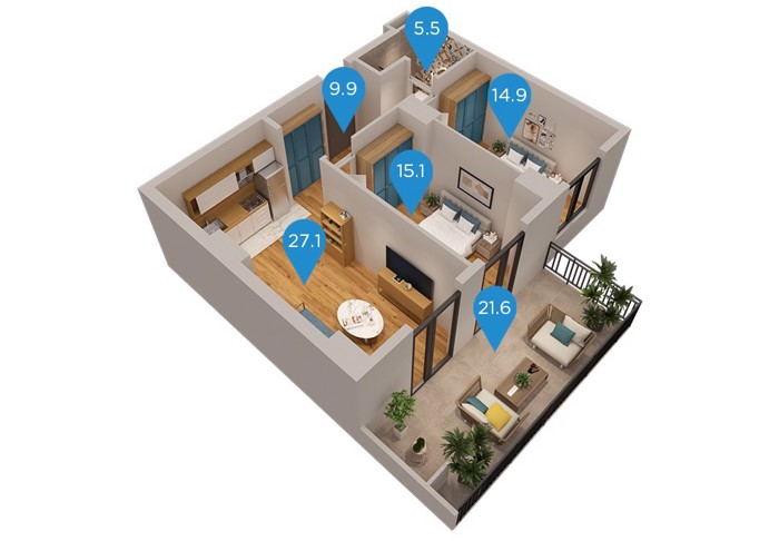 The residential complex Archi Kikvidze Park is located in the area of Nazaladevi, in an ideal location, on Z. Kikvidze Street, 2 minutes away from the Gotsiridze and Didube metro stations. It features a green yard of 15,000 sq.m. which will have a relaxation area, sports and playgrounds. 50.5 square meters, 1 bedroom. The complex will be delivered in December 2025. 20 floors.
