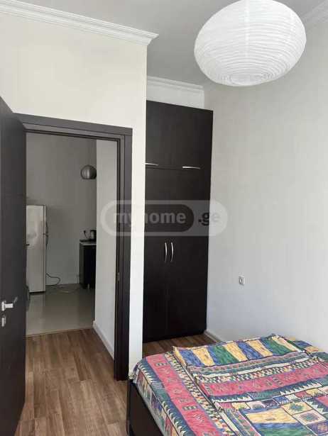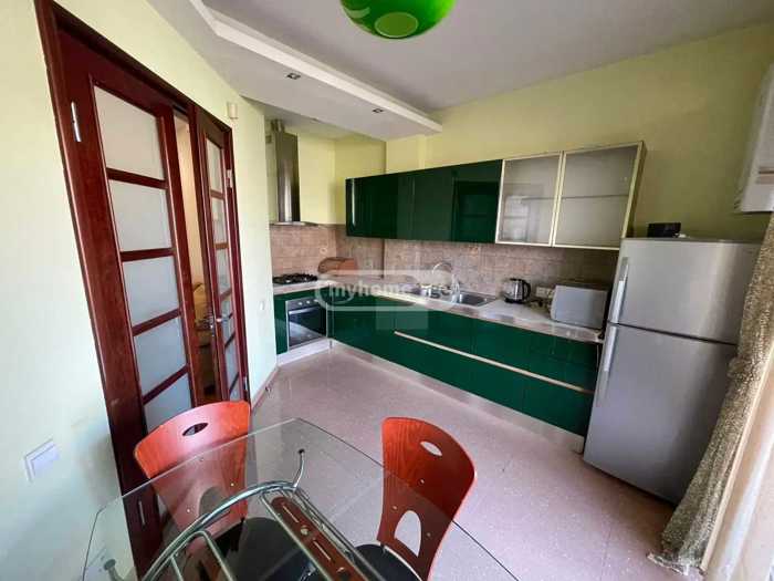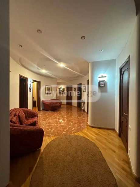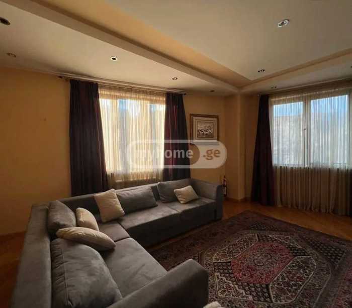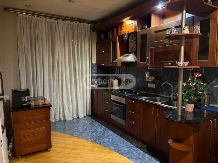 For sale: a well-furnished beautiful spacious apartment with underground parking, in Vake, 4 V. Gabashvili Street, 3 rooms, 2 bedrooms, 2 bathrooms, separate kitchen, with built-in wardrobes and storage, 12 m2 veranda, the apartment comes with all furniture, appliances, and household items, views of the Vere River.
