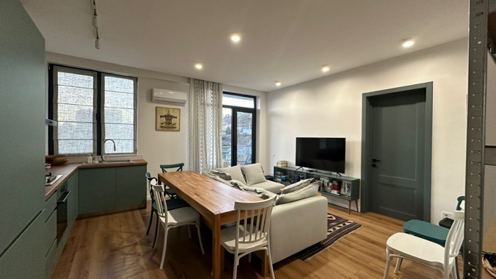 For sale, a 63 m² apartment on Delisi Street. Newly built, with a modern design. The apartment is bright and cozy. It has a new renovation, with a well-equipped kitchen and bathroom. The location is distinguished by good infrastructure, close to schools, kindergartens, shops, and public transport. If interested, please contact me at the number indicated in the ad.