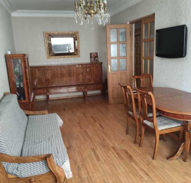 Urgent!!! A 74 square meter apartment for sale in the Avalashvili project In Gldani microdistrict No. 3, near the DKD bridges, in a 16-story building, on the side of the main road, sunny side, a 10-minute walk from the metro. Perfect location, freight and passenger elevator, secured entrance. The apartment has built-in wardrobes, and it also comes with a refrigerator, gas stove, table and chairs, bed, wardrobe, nightstand, writing desk, and a trilleuse. Ideal for renting out, currently rented. Price: $75,000