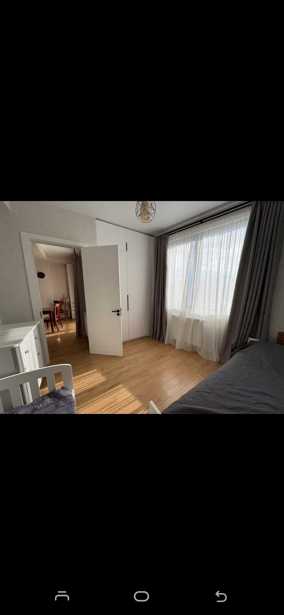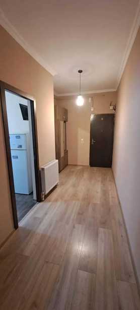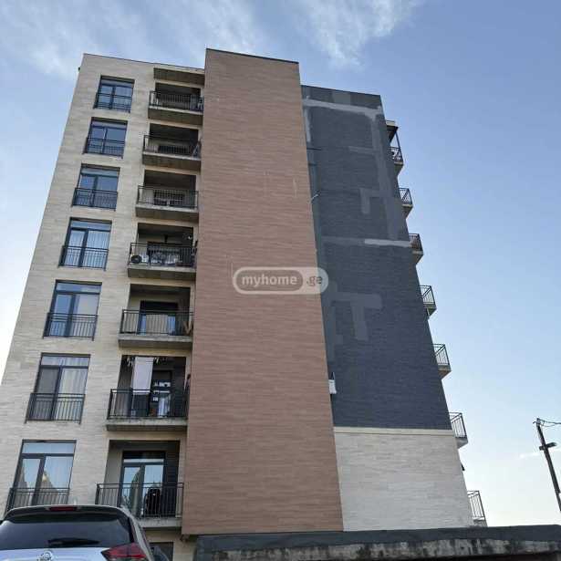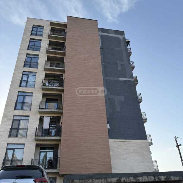 The building is 5 years old, has two bedrooms, and both bedrooms have balconies. It is an 8-story building with one entrance and a total of 30 apartments. It is in a quiet area, has a good view, located next to school number 39, and is also 300 meters away from school number 177 and a kindergarten. There are several chain markets nearby and a bus stop. It is a 10-minute walk from Akhmeteli metro station.