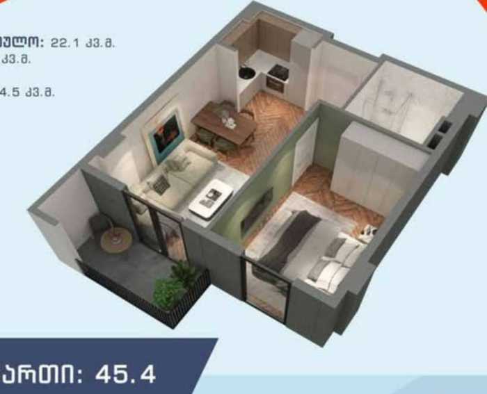 An apartment is for sale in a new building. The apartment is located in Isani, near the Olympic pool. There are a lot of sports activities being developed around: stadiums, tennis courts, pools, a large (one of the biggest and best in all of Georgia) skatepark, parks, and several kilometers of boulevard. (In short, children will grow up to be athletes in this area :) ) There is also a big supermarket. The house has a nice view (see the photos). The apartment will be handed over at the end of the year, and renovations can start in the fall. It will be handed over in green frame condition. It is on the 10th floor. (The construction of the last floor is currently ongoing on the 12th.) There is an internal interest-free installment plan until the building is handed over. I am the owner. Contact me for additional questions.