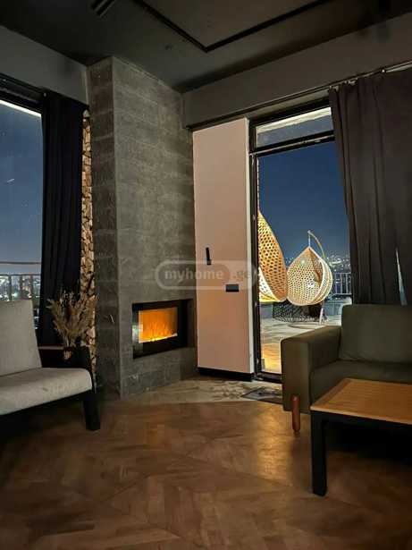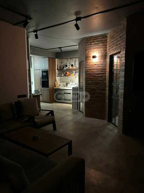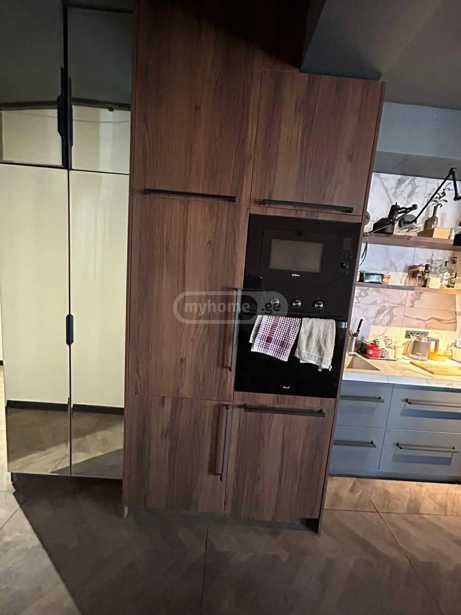 The apartment is located between Isani and Samgori metro stations, in a newly built building, with a new renovation, central heating system, a 5 sq.m. veranda, tidy entrance and infrastructure, and a yard secured with a barrier.