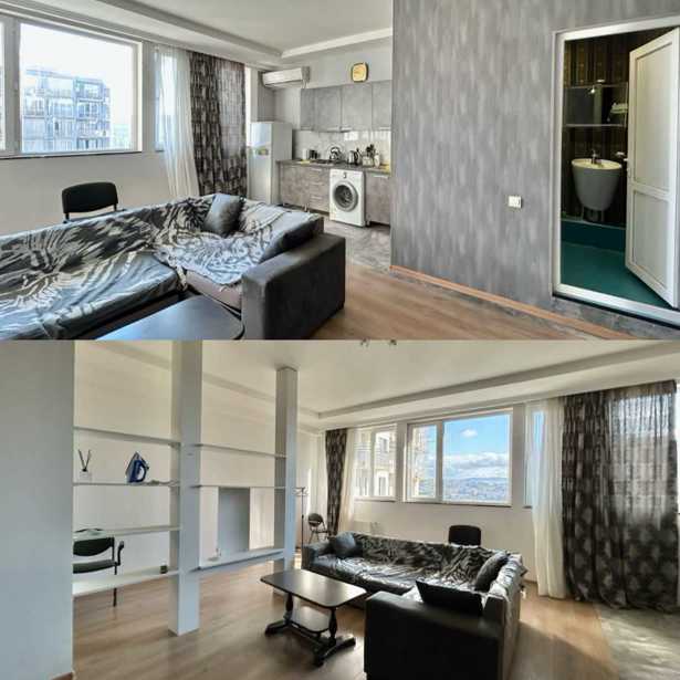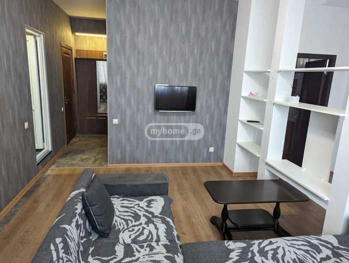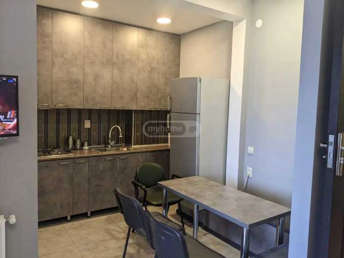 For sale, a 3-room renovated apartment with furniture and appliances in a newly built building on Apakidze Street, near the Sports Palace. (The apartment is divided into two 60-sq m parts), a studio-type living room, 2 wet points, 2 balconies, with a parking space.