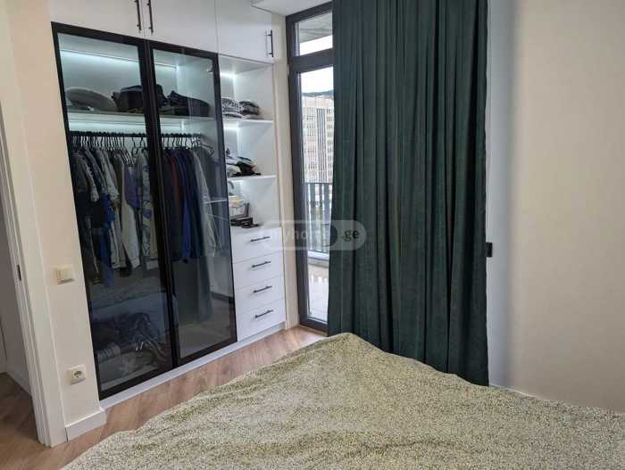 Location: 8 minutes on foot from Vazha Metro / University Metro, 10 minutes to the mall, 7 minutes to Agrohub, Carrefour is nearby. 7 minutes by car to Vake/Tsqneti. Everything is close. Renovation: I renovated it for myself and live here; everything is minimalistic and practical, with no unnecessary details. Everything is of the highest quality, and I have spared no expense on anything. Furniture and appliances stay. Building: It is an Archi building, cleaned three times a week, you cannot enter without a code. Everything is well organized. Indoor area 64, outdoor 31 (a large balcony wraps around the apartment). View of the new bridge, Tsqneti, Vazha. You can access the balcony from all sides.