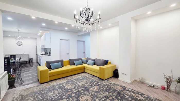 For sale in Saburtalo on Shartava Street, a three-room newly renovated apartment with two bedrooms, furnished with appliances...