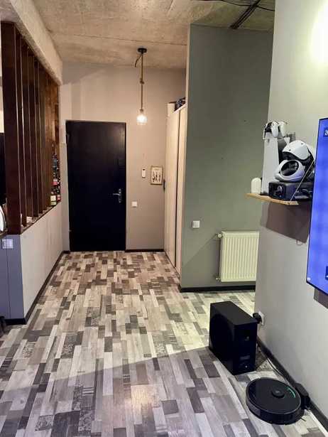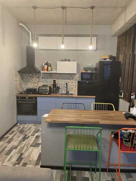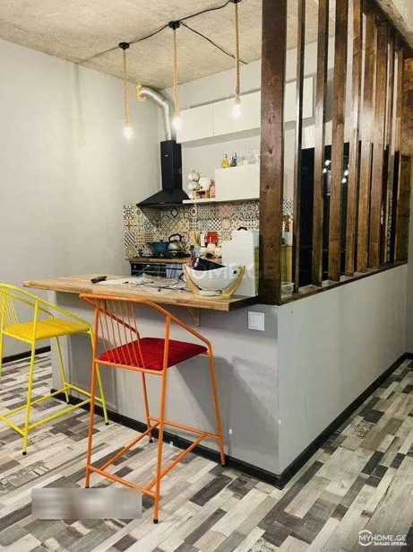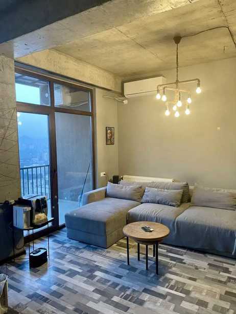 Urgently for sale is a 47 square meter apartment on Topuridze Street in Vashli Jvari, newly built, renovated, with a balcony, studio-living room, 1 bedroom, furnished and equipped with appliances. With beautiful views, with a barrier in the yard.