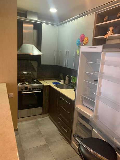For sale is a bright corner apartment with three rooms, furnished and partially equipped with appliances. It is renovated. It also comes with a parking space and a garage. The yard is gated with a barrier and the entrance has a code. It has central heating and metal-plastic doors and windows, as well as mosquito nets. The apartment is located very close to the metro, and there is a school and kindergarten in front of the house. If you are interested, please contact me.