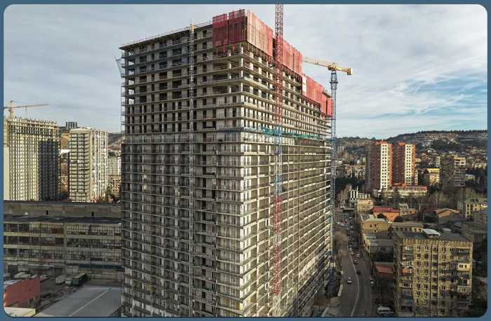 The apartment is located next to the Cinema of Georgia, in a newly built building, furnished and with appliances.