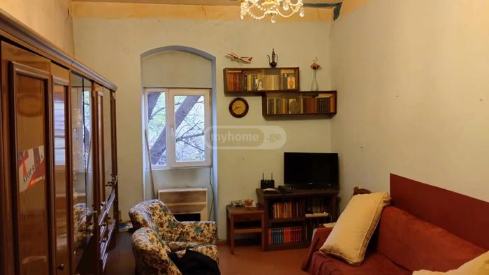 In Mtatsminda, 10 minutes away from Rustaveli Avenue, a 60 sq.m. apartment is for sale in a Tbilisi yard. It is a good choice both for living and for investment. A beautiful view of the whole city of Tbilisi opens from the apartment.