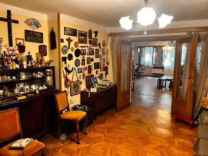 For sale on Tsreteli Street, on Kipiani Street, an 80 square meter corner apartment with a large living room, a loggia, a glazed balcony, a separate bedroom, and a separate kitchen. It can be converted into a 3 or 4-room apartment. Price: $96,000