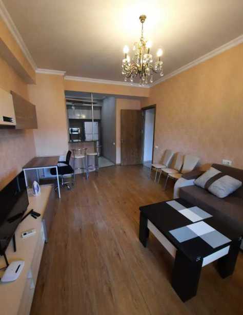 I am the owner. For sale is a 2-room apartment with 1 bedroom, 67.5 m2, on Tsagareli Street 68. Renovated, in a newly constructed house, 9/10 floor. Furniture and built-in appliances are included. It has a southern view. There is a 15 m2 underground parking space. The price without parking is $135,000, with parking it is $150,000.