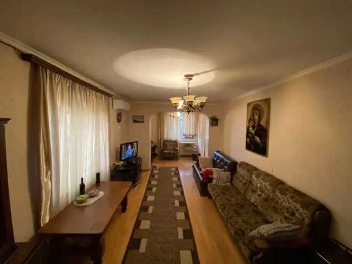 Apartment for sale in Tbilisi, in a quiet and cozy location. There is a bus stop in front of the building, all necessary shops in one area, the apartment has 5 rooms, 3 bedrooms, a living room and a separate kitchen. There are two bathrooms, both tiled, all electrical installations have been changed, the house has 1 year old furniture and appliances that remain. There are two elevators, passenger and cargo, both are operational. Entry into the building is via an electronic card, the elevator also works with a card. The building has a large parking area and a barrier. The house is fully renovated, you can just move in and live, nothing is needed. The apartment has an open balcony with large storage spaces.