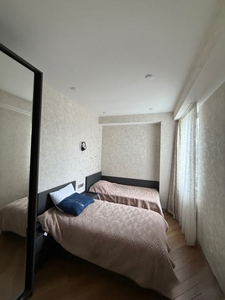 For sale is an uninhabited, newly renovated apartment on the 11th (12th) floor. It is equipped with high-quality built-in furniture and appliances – it is fully equipped for comfortable living. In the apartment, you will find: • Built-in kitchen • Refrigerator • Gas stove and oven • Microwave oven • Washing machine • Fully furnished living space Layout: • 2 bedrooms – one large master bedroom and another twin bedroom (beds are separated) • Kitchen-studio • Balcony, which additionally includes a storage space The apartment is bright, comfortable, and ideal for living.