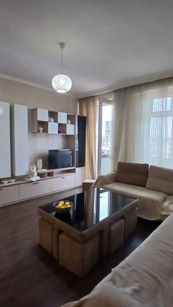 For sale is a studio-type, 2-room apartment in a newly built building, with new renovation, furniture, and appliances.