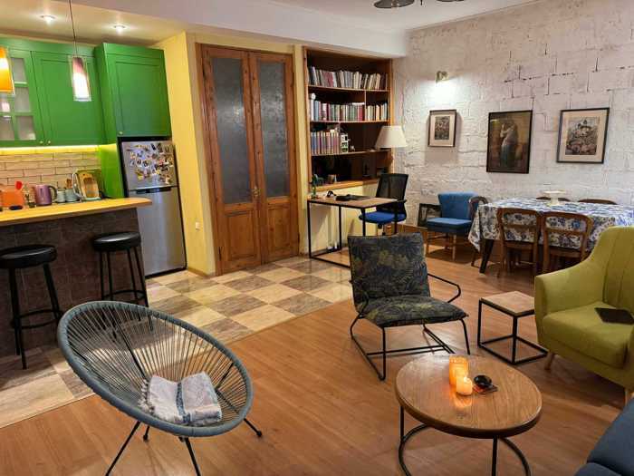 It takes 10 minutes to walk from Delisi Metro. There are three bedrooms, two sunny and bright, while one is with secondary lighting, the living room is also bright with a large window. The apartment has a bathroom, a spacious kitchen, and a studio-type living room. The apartment features tiles and a bathroom. The price of the apartment in this condition is 115000.