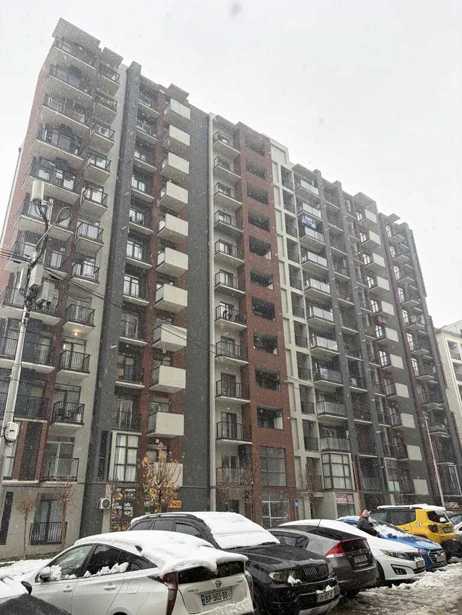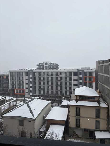 Urgently for sale, an apartment built by Builderz. The building has already been delivered and residents have moved in. It has its own yard and a playground for children (it's snowy in the picture and not clearly visible). In a green frame condition. All connections are completed. Nothing obstructs the view, which looks directly at the Tbilisi Tower and the mountains. Two elevators, the doors are secured with a code. The price is negotiable.