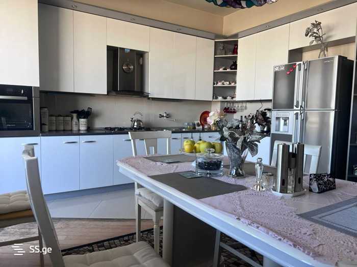 For sale is a 295 m² apartment on Bagrationi Street. Newly built, modern design apartment in an excellent location. The apartment is bright and cozy, ideal for a family. If interested, please contact me at the number provided in the advertisement. There is a bar corner in the living room. It is a very bright apartment made of brick with several built-in wardrobes and a workout area. It comes with 2 parking spaces in a closed yard. Price: 398,000 USD.