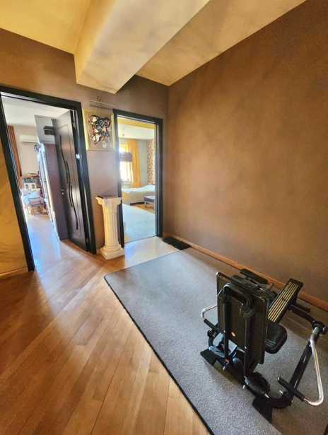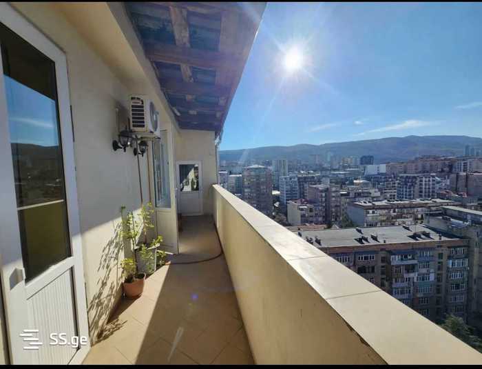 I am the owner. For sale is a 5-room duplex, which has parquet flooring and 3 bedrooms. Each has its own bathroom, in addition, there is 1 bathroom for guests. 1 study with a fireplace, 1 large living room, and 2 storage rooms. Every room has a balcony. The kitchen has a large balcony/veranda. There is a bar corner in the living room, where water is connected and a sink is installed. It is a very bright apartment made of brick with several built-in wardrobes, a large entrance, and a workout area. We have 2 parking spaces for cars in the closed yard. The building is located in the center of Saburtalo, between Mitkevičis and Kazbegis avenues, on a cozy street. There are many markets, shops, and pharmacies around.