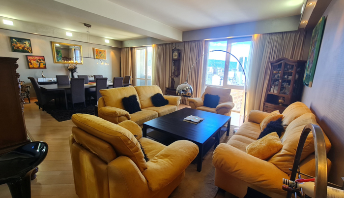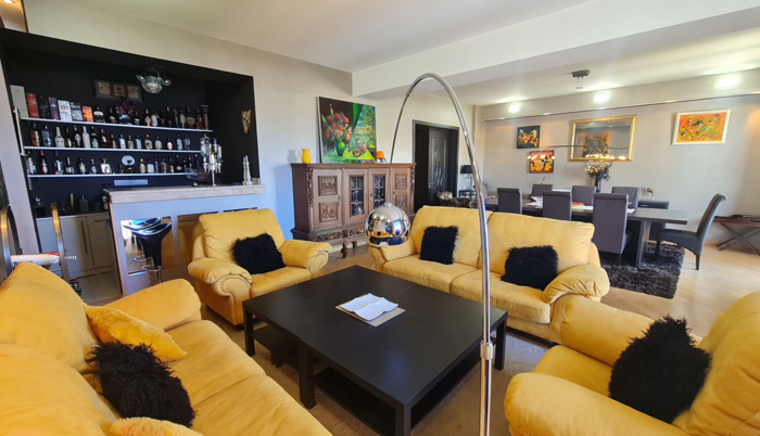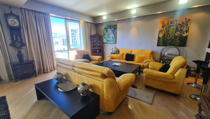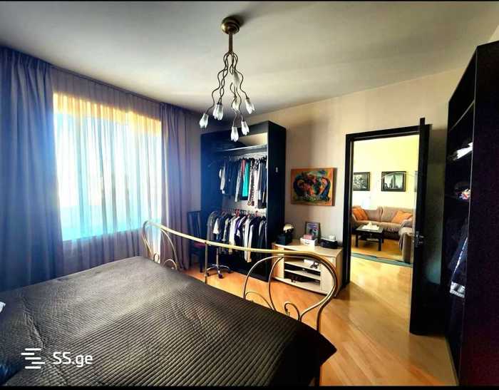 For sale is a 5-room duplex-type bright, spacious apartment in the center of Saburtalo, at the intersection of Mitskevichi and Kazbegi. The apartment has 3 isolated bedrooms with their own bathrooms, in addition, 1 guest bathroom, 1 study room with a fireplace, 1 large living room and 2 storage rooms. All rooms open onto a balcony (four balconies in total), and the kitchen is bordered by a veranda. There is a bar corner in the living room, where water source and a sink are also installed. The apartment has a large entrance hall, built-in wardrobes and a workout area. The price includes 2 parking spaces in a closed yard.