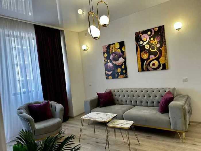 For sale is a 2-room furnished apartment with all furniture and appliances. Everything stays in the apartment. 5 minutes from the metro station Delisi, the apartment has 1 bedroom, a studio-type living room, and 1 balcony with a view of Tbilisi. The apartment is rented but can be vacated in 1 month if desired.