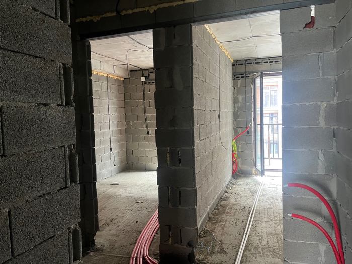 01.72.14.038.427.01.019 For sale in green frame condition. Communications are in the process of being established (the payments for water, electricity, and gas have been made). The elevator has been installed. You can continue and finish the renovation at any time. The building is undergoing finishing works, entrance decoration, and other apartment renovations. In the apartment, electrical wiring, plumbing, bathroom setup, and tiling works have been completed.