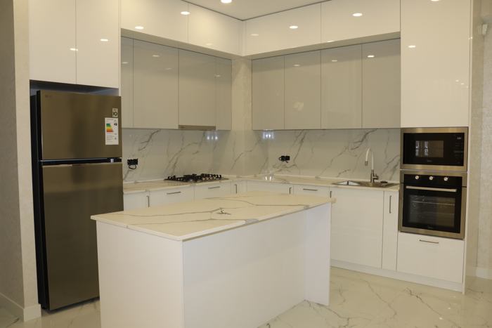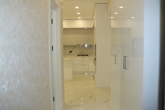 In Zahaeshi, in a newly built building, a 49 sq.m apartment is for sale, with a green frame. All communications are connected. The building has a beautiful view.