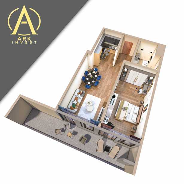 An apartment is for sale in Didgomi, 4000 Meskhi dead end, in a newly built building. Half of the construction has already been completed, and the apartment will be delivered in white frame condition by the end of the year. The price is given for a full payment.