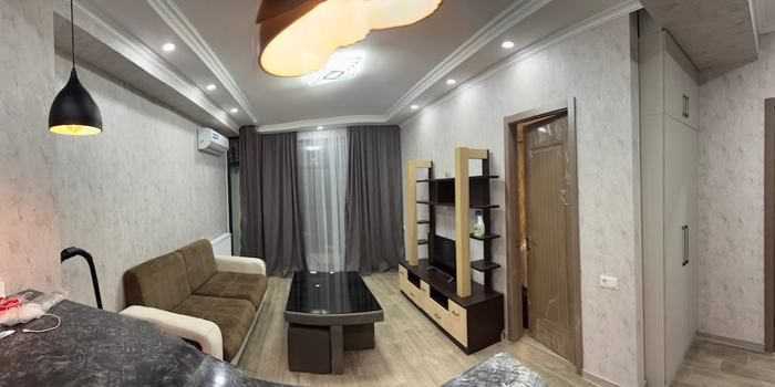 For sale is a newly renovated 2-room apartment with furniture and appliances, with a total area of 58.1 sq.m. The apartment is located in Didgomi, on Teimuraz 1 Street, in a premium-class newly constructed residential complex in the courtyard of Central Park. It is a cozy and bright apartment with modern and tasteful renovation, everything shown in the photos remains: - Equipped bathroom with washing machine - Equipped bedroom - Large studio with built-in kitchen, refrigerator, dishwasher, gas stove, and extractor - Balcony with built-in storage and central heating boiler. The building has an exceptionally good location, as it is directly in Central Park, has its own large yard and parking spaces. I am the owner, and please contact me to arrange a viewing - 593275455.