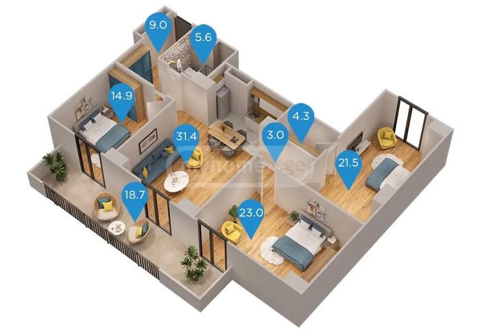 3 room Flat For Sale. Digomi
