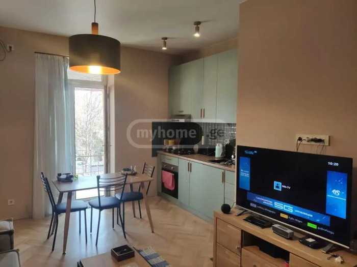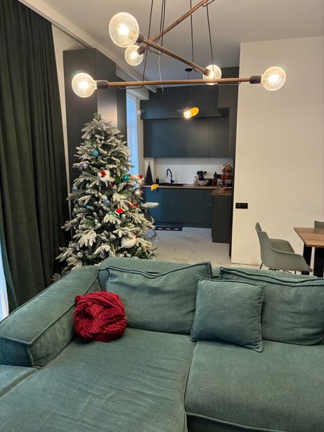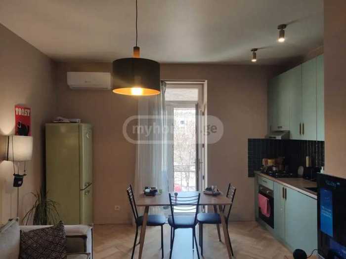 Apartment for sale in Digomi village, 900 meters from the court. The apartment is newly renovated, has 2 yards, up to 70 sq.m. There is an exit to the backyard from all three bedrooms. It is sold with furniture and appliances. There is underfloor heating and air conditioning in the living room and kitchen. The renovation was completed in January 2025.