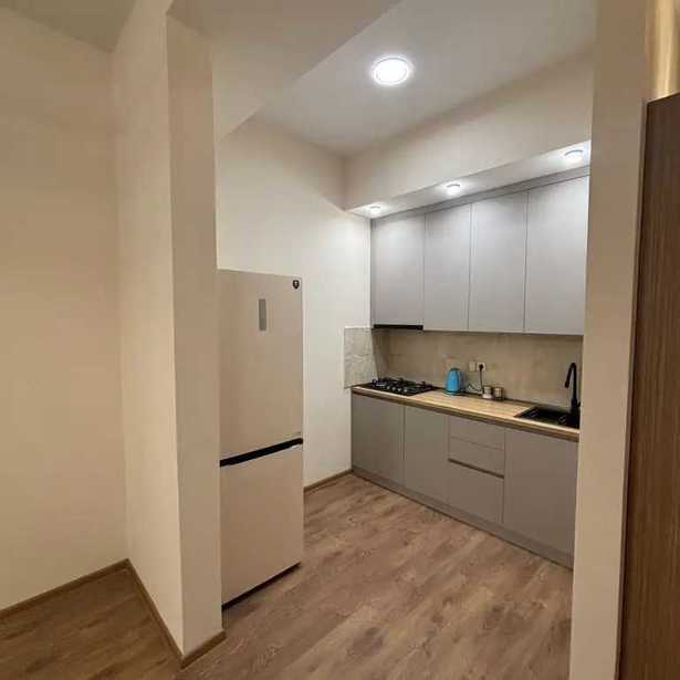 For sale is a 2-room newly renovated apartment in a newly constructed building. Fully furnished with furniture and appliances, built-in and soft furniture. The heating boiler corner will be wrapped by the construction company on the balcony in November. The total area is 56.5 sq/m, of which 9 sq. is the balcony and 15 sq. is the bedroom. The apartment is located on the high 1st floor (it is effectively the 2nd floor). Address: Agmashenebeli (former Railway) Street N22. It is at the intersection of Dadiani and Uridebula streets, behind Art-Hall. Nearby are a school, kindergarten, park, pharmacies, shops, and other institutions. It takes 3-4 minutes on foot to the pedestrian bridge (upper descent of the railway station square). There is a huge area for parking near the building. If you are interested in an investment, it is rented for 6 months at $450.