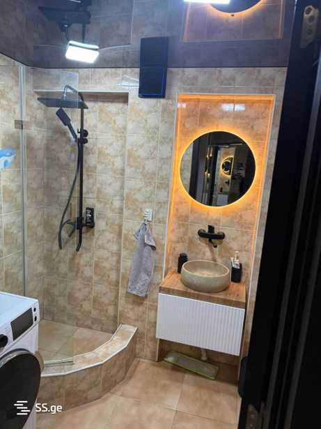 For sale on the 16th floor of a 16-story building in Avchala. With central heating. Built-in kitchen, washing machine, and refrigerator which can remain in the apartment if desired. $48,000, currently rented for 600 GEL.
