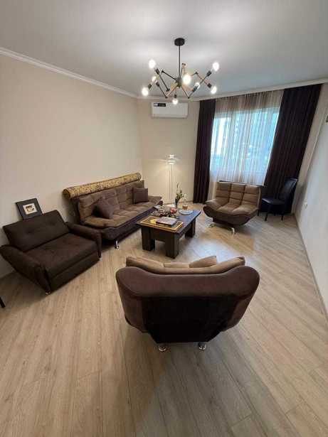 A cozy and well-furnished apartment is for sale in the Diri complex in Isani, the apartment has 1 separated bedroom and a separate kitchen, also a 5m2 balcony with a beautiful view, each room has a window, and primary lighting. The apartment has central heating, and the furniture remains fully.