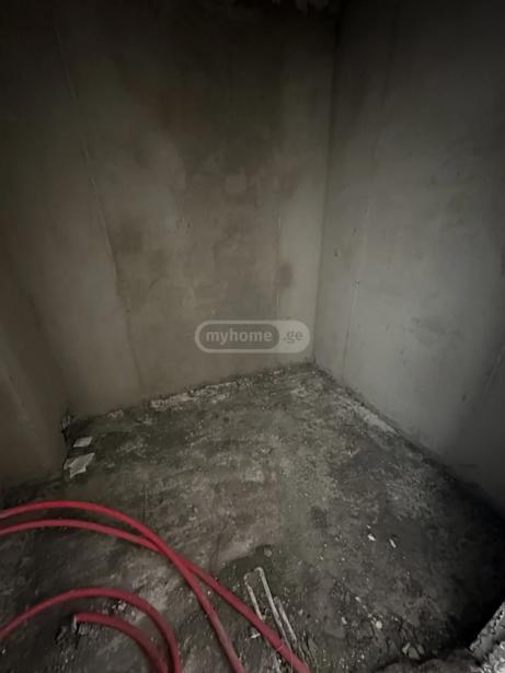 A 76.5 sq.m apartment with two bedrooms is for sale in the completed project on Eredvi Street, in Didi Digomi. The apartment is in green frame condition: heating pipes, electricity, and plumbing are connected, the walls are plastered, the floor is leveled, and tiles are laid on the balcony. The building is equipped with security systems and cameras, and has a fenced yard.