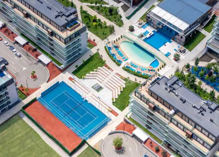 The price of apartments in our project starts from 56 square meters. Krtsanis Resort Residence is built on an area of 20 hectares of land in the historical and prestigious part of Tbilisi, in Krtsanis. Krtsanisi Resort Residence is located only 6 km from Freedom Square and 17 km from the airport, and the area offers beautiful panoramic views of the city. 70% of the project consists of recreational areas, which include swimming pools, fitness centers, horse riding, mini golf courses, tennis courts, paddle tennis courts, football and basketball courts. The project also includes an educational space and a commercial building that will house a large-scale hypermarket, cafes, salons, shops, workspaces, an indoor swimming pool and a fitness center.