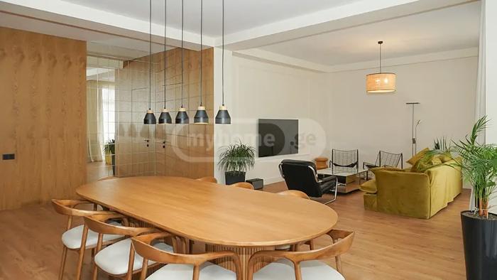 For sale is a duplex-type 4-room apartment in the "Metra Park" complex in Bagebi. Total area - 135 m2. Studio-style kitchen with living room, 3 bedrooms, 2 bathrooms, and 2 balconies. Equipped kitchen with appliances. Price - $320,000.