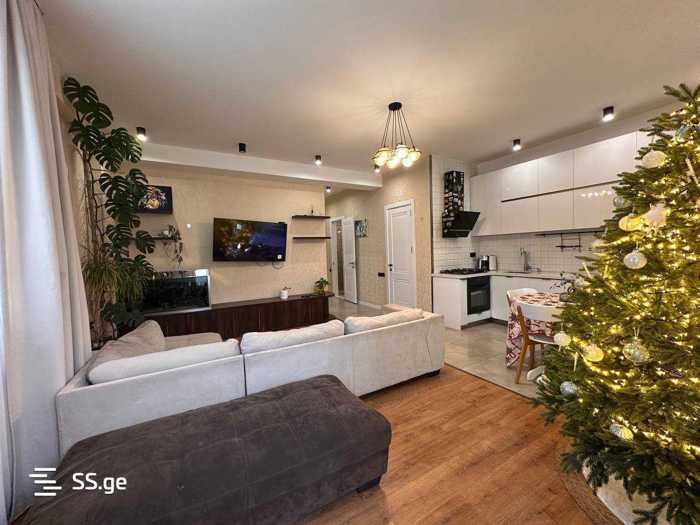 For sale is a fully newly renovated, bright and cozy three-room studio-type apartment in a newly built building. The apartment includes two comfortable bedrooms, a modern studio-type living room, one wet area, and two balconies (total 11 sq.m). It has been renovated with the highest quality materials. It is fully furnished with high-class furniture and appliances. The renovation in the apartment is ongoing and will be completed in two weeks.
