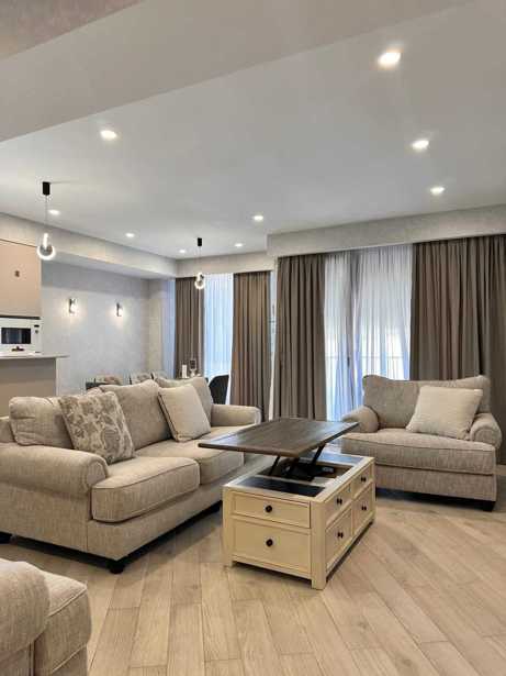 For sale, a 4-room apartment on the fifth floor with 3 bedrooms, including 1 master bedroom. 2 bathrooms and 2 balconies in a quiet area of Saburtalo. It has been renovated with high-quality materials and is equipped with expensive furniture and appliances. The best views are visible in the photos. A modern elevator is in operation.