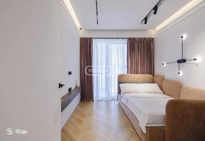 A newly built apartment with an area of 56.3 m² is for sale on Mikheil Tamarashvili Street. The apartment is newly renovated, with a modern design and comfortable living conditions. All necessary facilities, such as schools, kindergartens, shops, and public transport, are nearby. The building has a private yard of 6000 sq. The Central Park (on the old hippodrome site) will be completed soon; it will take you 3 minutes to walk to the metro. The apartment is equipped with two air conditioners, a dishwasher, and washing machines for clothes, a built-in kitchen with all necessary appliances; the price includes all inventory and furniture shown in the pictures and not shown in the pictures. The building also has a fitness center, security, and concierge services.