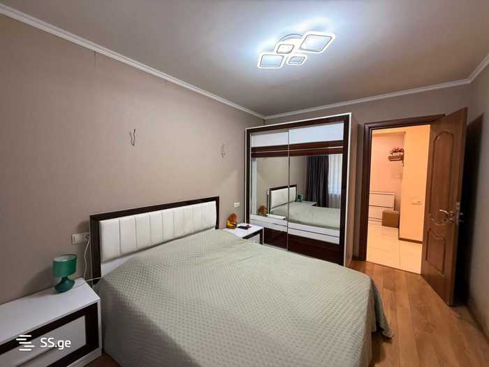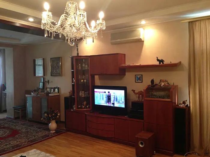 For sale: apartment on Nutsubidze III district, III quarter, fifth building, third floor. Area is 100 sq.m. It has three bedrooms, a large studio-style living room with a kitchen, (there is also a small room of ~6-7 sq.m. between the living room and the bathroom with a door on both sides, where it's possible to separate the kitchen, make a wardrobe room, or, if desired, expand the bathroom), a balcony, central heating, natural gas, electricity, water. The building is located in a green and ecologically clean environment, and within walking distance of 1-3 minutes there are bus stops, bakeries, parks, pharmacies, supermarkets and hypermarkets, a fruit and vegetable market, a post office, a kindergarten, a school, a tennis court, and a church. It is a 10-12 minute walk to Vazha-Pshavela metro. 15-17 minutes walk to City-Mall. 3-5 minutes by car to Lisi Lake. The apartment is with old repair/renovation. Price is $110,000. This is a great opportunity to buy a cozy and comfortable apartment in the best location. If you are interested, please contact me at the number indicated in the announcement.