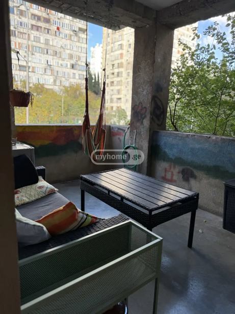 For sale: a 3-room, bright and sunny corner apartment in the 3rd micro district of Nutsubidze, near the park and close to Nutsubidze Street. Both bedrooms have natural light. Partial furniture and appliances remain.
