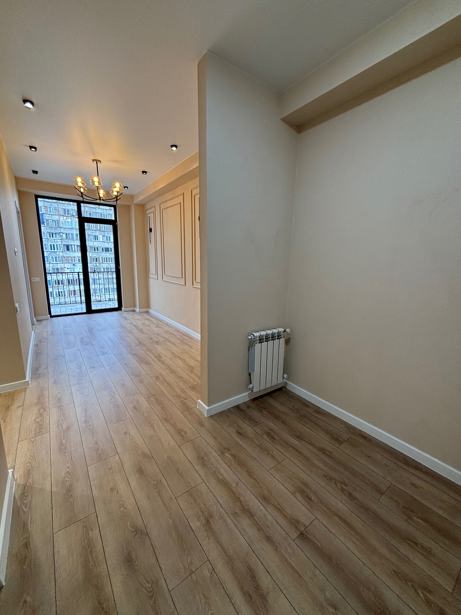 A 40 sq.m apartment is for sale in a premium quality residential building in Nutsubidze 4 microdistrict, in white frame condition, on the 6th floor (studio hall of 18.5 sq.m, corridor 3, bedroom 9 sq.m, bathroom-toilet 4.5, balcony 5 sq.m). The apartment has high-quality electrical wiring and heating pipes installed. With a finished floor, plastic metal doors and windows, and a central high-quality door. The apartment is two-room, one room has 9 sq.m with secondary lighting (it is shown in the drawing in the photo) you can use the secondary lighting room as a bedroom, and 18.5 sq.m can be a studio hall, or you can make 9 sq.m as a kitchen and use 18.8 sq.m at your discretion (see photos). The building is completed. The elevator is operational. The final finishing work of the building is ongoing. The building is located in a central area, at the same time in a cozy and environmentally clean place. (Near the Arch complex "Lisi Sunrise") It has a view of the city side. I am the owner. The apartment has a cadastral code and is registered in the public registry. The advantage of the building is a 5000 sq.m recreational area, good location in terms of ecology, as well as easy access. Panoramic view of the city, football and basketball fields, open and closed parking. 24-hour security. The improvement of a large square and a playground will be completed in the spring. The price per sq.m is 1375 USD, it is the best for both living and investment.