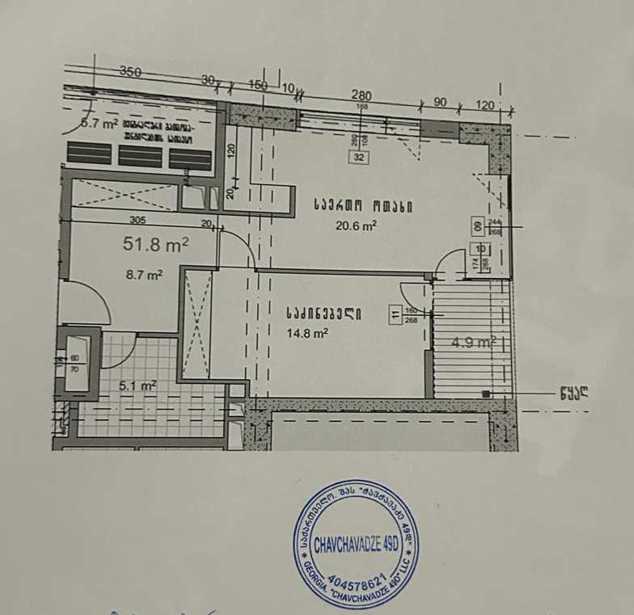 I am selling a one-room apartment located on the 9th floor of the under-construction building on 49d Chavchavadze Street, Axis. The total area is 56.7 sq.m. (of which living space is 51.8 sq.m. and balcony is 4.9 sq.m.). According to the existing contract, the apartment will be provided with high-quality materials and European renovation. The fee for relinquishing a share in the contract is $85,000. After the completion of the main construction works, the payment for the buyer (i.e., the recipient of the share) according to the contract will be $83,146. An appendix N2 is attached to the contract with a detailed list of renovation works: name of the work, material, brand, manufacturer, and apartment layout. Thus, the total cost of the apartment for the buyer amounts to $85,000 + $83,146 (the payment for the second stage), totaling $168,146. I am the owner - 599 95 57 67.