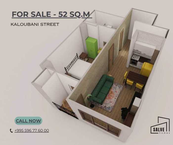 A apartment for sale in a newly constructed, commissioned, and inhabited building on Kaloubnis Street! The apartment is located in a quiet and developing neighborhood, just a 5-minute drive from the Varketili metro station. Condition: green frame. The building has already been commissioned and inhabited, with a clean entrance, well-arranged yard, and well-maintained environment. There are schools, kindergartens, supermarkets, and public transportation nearby.